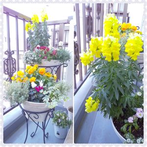 そろそろ植え替えようと思って、記録用に写真をと、金魚草の鉢をクルクル🌀回していたら、ポキッ🙄😱😨😆 あ゙〜〜〜 折れた~😓 そろそろと思っていたけど、今日はまだ考えてなかったのでちょっとショック🥺 小さい花瓶にさして飾りました😆