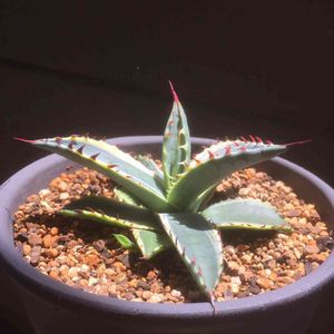 この色彩にズキュ〜ン💕とやられてお持ち帰りしちゃいましたー これからどうなるのかなぁ🤤 綺麗に育って欲しいなー 形良くアガベを育てるのって難しいよねぇ。ま、うちのベランダの日当たりに難があるんですけどね💧