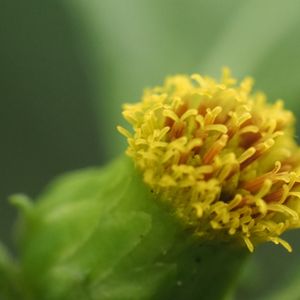 ガンクビソウ(雁首草) *キク科ガンクビソウ属 花期は8〜10月 秋田県以南〜沖縄以北の山地の林内や林縁の半日影に生える。 花頭は、枝先にふつう1個ずつ付き先端が少しすぼまる事が多い。 小花は黄色。 似たヤブタバコは花が葉腋に付く 仙台市野草園