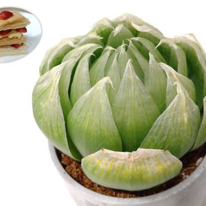 多肉棚最後の入居者はハオルチアのロックウッディさん🐸 つい最近知ったばかりで、ふきのとうみたいな見た目(玉ねぎみたいに変化する!)に衝撃を受け、更にお値段にびっくり(。☬0☬。) すんごく迷って、夢も見ました・・・(¦3[▓▓] 👧の入園記念ということにしてお迎えしちゃいました🤣 これは枯らせられない😅 このまま締まった状態で育てたいですが、開いた姿も綺麗なのでまずは環境に慣れてもらって、ですね🐸 左上は今日👧とおやつに作ったミルフィーユです🍰 カスタードクリーム市販の使ったら甘すぎてクリーム少しだけ入れました💦 📝カスタードクリームは自分で作ろう🫡