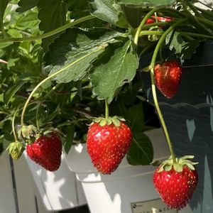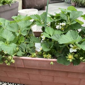 鉢植えのイチゴ、お花が咲いて実のっています✨🍓💗🍓💗🍓💗 🏷毎月15日はイチゴの日、参加させて下さい🍓