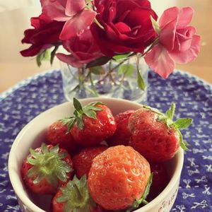 おはようございます🥰 アイベリーのいちご🍓🍓🍓三兄弟が輝いてます✨✨✨ 食べ頃に😋 いいお色目… なんとも可愛いお姿😍💕💕⤴️ 朝頂く ヨーグルト🍦に…夜🌉の夜食…ワイン🍷に…うーん迷ちゃいます。🤭
