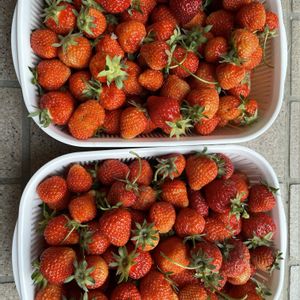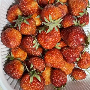 今日も一日お疲れ様でした😊 夕方畑に行ったらまさかのいちごの量🍓🍓🍓 中にハート形❤️のいちごもありました🍓 今年は甘みが少ないのでジャムにしようと思ってます🎶