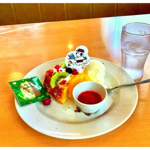 💕 幸せ時間 💕 ファミレスの スヌーピー( ・ ´`(●) コラボ メーニュー ☺️🎂🍨🍴✨ 13000歩…頑張ったご褒美に (≧∇≦)