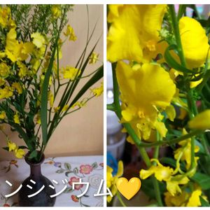 おはようございます🌅😊 今朝も晴れです☀️ 相変わらず朝はかなり寒いです🥶❄️🧊 ✨今日のお花✨💛💚オンシジウム💚💛です😆👍🌼💛💚🌿 このコラージュ写真は昨年も今日のお花のオンシジウムの時に投稿したものと同じコラージュです👍 再び投稿します👍 今年は写真を撮ってなかったので😅👍✨ 可愛らしいお花です🥰💕🌼💛💚 このオンシジウムのお花は、昨年スーパーの切り花コーナーと、鹿沼市花木センターで撮影しました😆👍🌼💛🌼💛🌿🌿 コラージュ写真の左⬅️の2枚は鹿沼市花木センターにて、鉢植えです🪴💛😆👍💕 そして、右➡️の2枚はスーパーの切り花コーナーで撮影しました💐🏺💛😆👍💕