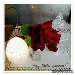 🌿挿し木の薔薇🌹 雨に濡れていたのでチョンパしました😄 昔、父とお祭りの植木市で購入した子✴ 深紅色の花びらがビロードのようだねと話したっけ😊 品種は分かりませんがとってもいい香りがします💕