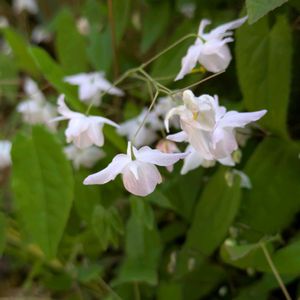 おはようございます😊 山野草コーナーの梅花イカリソウが咲き始めました(*˘︶˘*)✨ 梅の形に似たコロンとしたお花が可愛いですネ♡♡ フラボノールを含んでいて漢方薬として用いられるそうです。 🏷白い水曜日♡