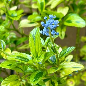 セアノサス エルドラド ♡ ブルーの花を咲かせて 黄斑入りの葉は花終わりに 白覆輪になるそうですょ~𖤣𖥧𖥣。𖡼.𖤣