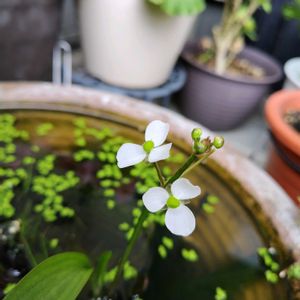 春に水瓶にドボンしたヒメオモダカ。 やっと花が咲きました。