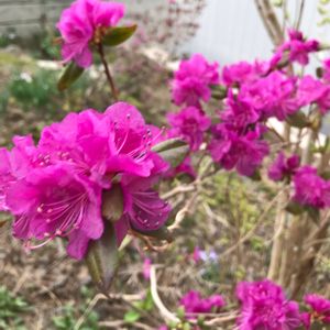 おはようございます😃♬ ポッポッと色づいて来たな〜と 思ったらもう開花していました♪ ❣️昨日暖かかったから⁉️ 蝦夷山ツツジ💞 今年は花色が濃いです💓