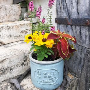 今日、玄関横の花壇です~😊 今年はお花が続いてるので、 前部分を残した カラフルオステオスペルマム🌼 淡い黄色で頑張ってます。 千日紅💓は、 びよんとあちこちに😅💦💦 可愛く咲いています~😊💓💓