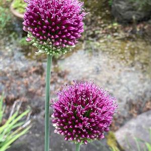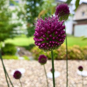 アリウム 真っ直ぐ伸びた茎に紫色の小さい花がたくさん集まったのがボールみたいで可愛いです🥰