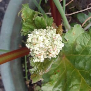 昨日は寒く 今日はとても暑い日でした😅 昨年初めてルバーブを育てて見ました。 冬の寒い時期を乗り越えて 大きく育ちましたよ🌱 花芽が出て来ました。もちろん初めてルバーブの花を見ました。 調べましたら 茎を大きくするには 摘芯が必要らしい。 ルバーブは 葉や花には毒があるので 茎しかジヤムに出来ないと言われました😅 早速花芽を摘芯しましたよ😁