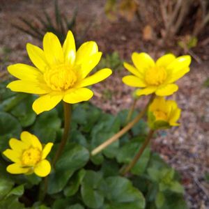 戸川公園のヒメリュウキンカ🌼 お花は光沢があって、日が当たるとキラキラしてました🤩