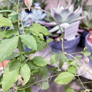 クレマチス♡ソネット 咲きました♪お花のサイズが小さくてびっくり🫢全長2cmくらい⁈でも可愛い☺️ 根元折れかけて届いた苗だったのでホント元気に咲いてくれてありがとう🩷 2025.6.6開花記録