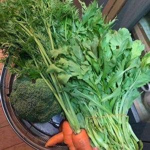 うちで採れた野菜ではありませんせんが😆 毎週施術で通っている場所の近くに、流山市の森田農園さんで栽培されている新鮮野菜の直売所が有り、時々野菜を買っています♪ 葉っぱ付きのにんじんさん🥕💖 日にちが経ってもシャッキリしてます😋 今朝は、にんじんや野菜たっぷりの特製野菜スープを作って食べました✨💓 昔、田舎(故郷)の町営スキー場の食堂で食べた味に似てたので懐かしくなりました( ´∀`)❤️