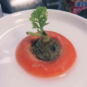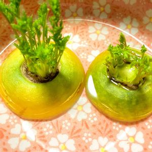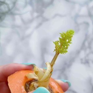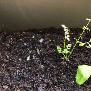 にんじんの切れ端🥕 約1週間、浅いお皿に水をはって育ててましたが、葉っぱが大きくなってきたので土に植えてみました。根が出てないのでこのまま育つのかどうか。。土に植えるの早かったかなぁ。 どうせいつも捨てていた切れ端なので、ダメもとで何度かチャレンジします!
