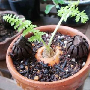 キッチンで水耕栽培したにんじんとカモミールを大地に放ってみた。強く生きるのよ。