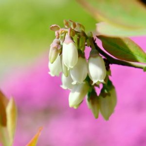 ブルーベリーの花が咲きました❣️ 今年は何個の実がなるかな💕 バックは満開になってきた、シバザクラです🌸