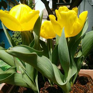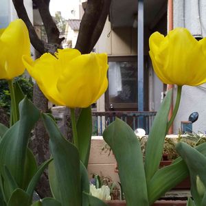 庭のチューリップが咲きました。 黄小町と言う品種です。
