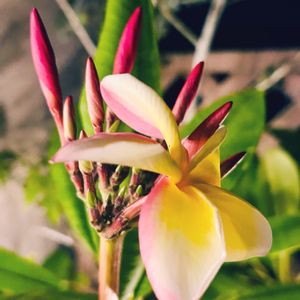 プルメリア開花しました。 暑いけど、頑張って咲いてね♡ 夜まで気付かなかった。ごめんよー。