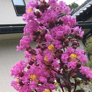 今日のお花 サルスベリ PWさんのサルスベリブラックパールレッドだと思います 今年はたくさんお花が咲いています 背も高くなってきました 銅葉で赤い花も気に入ってますが、家族からはサルスベリはピンクがいいと言われてしまいました