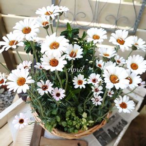昨日作った寄せ植えです。 全部見切り品コーナーに居たお花🌼見切り品とは言えないぐらいいい状態✨ カゴに寄せ植えしてみました😊