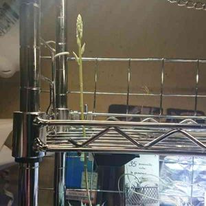 あとは上段だけ。 置ける様になれば24+αポットいけます。 さすがに据え置きタイプで赤チップのあるLEDは無いので来月あたりにでも購入し、ワイヤーで吊り下げる予定です。 スタンドタイプでスポット型LEDを取り付ければ最上段は直ぐにでも使用出来ますが・・・迷ってます。 ポットを置けるようにしてしまうとファンの設置を新たに考えねばならず悩みの種です。 10cmくらいのが3本程度だった左側のワイヤープランツが思いの外に成長してきました( ̄▽ ̄;)