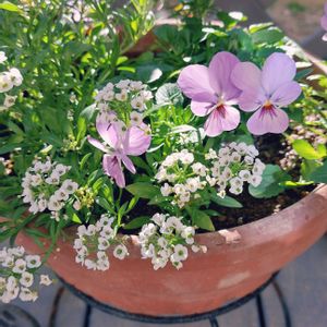 ビオラのフィオリーナ 昨年の10月末に一株買って、挿し芽をして増やしました✨右奥が親株です これからもっと一つずつが大きくなっていくと思います☺️ 強くて花数が多くてありがたい存在です😻