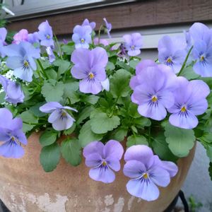 SUNTORYFLOWERSさんのビオラフィオリーナスカイブルーです😃 この子はミルフルと違い花茎が細くてお花もあっちこっちと行ってしまいなかなか綺麗にまとまってくれません😅最初の内だけかもしれないですが今は株の上側に花芽が沢山付いてるので最終的には丸くこんもりしてくれるのかなと期待してます😁