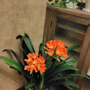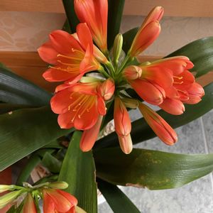 久々に2階に上がったら 蕾だった君子蘭が咲いていたので、慌ててリビングに連れて来ました。 株分けしてくれた花友さんの所の親株も昨年は咲かず今年は花芽が付いているそうです。良かった😮💨