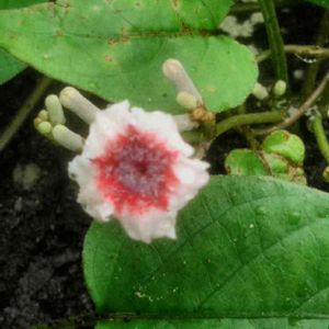 田んぼの畦に咲いてた花 あなたはだあ〜れ 花の径約2センチ アサガオかさつまいもの様な葉、大きさ4〜6センチ位