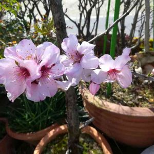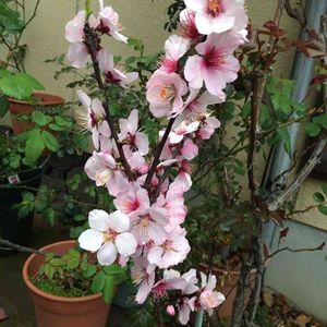 種まき用の アーモンドの実から 育てました🌸 発芽率が悪かったですが もう10年目です。 実がなっても 大きくなりません。 お花はサクラより早く 花びらも大きくて薄ピンクです🌸