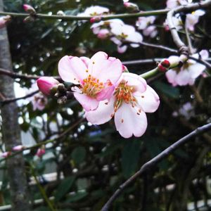 ひっそりと咲いてた アーモンドの🌸 毎年すこしずつ~✨ 雨上がりの1枚