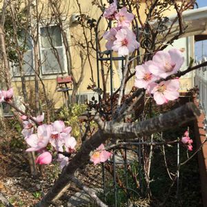 昨日は、まだ蕾だったのに、 今日はもう開きそう🌸 花の奥が濃い紅色をしています。 種から育てたアーモンドの花です。毎年、これが咲いて散ると桜🌸の花が咲き出すんです😊 今年は、肥料をあげてアーモンドを実らせたい❣️😋 一度だけ一粒実った事があったけど〜今年は頑張ります😉