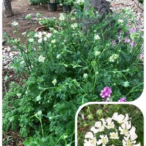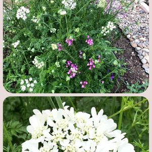 オルレア ホワイトレースが咲き始めました☺️ この株は、今年2月に購入した苗です。 昨年の零れ種から出てきた物はまだ小さく花芽もありません。