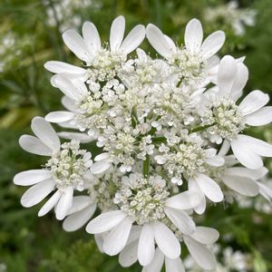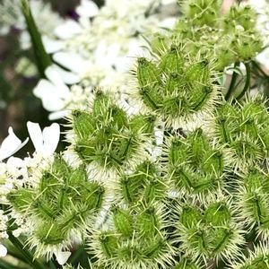 オルレア・ホワイトレース うちではもう種ができています。 下は、お隣に差し上げた苗ですが、低い草丈で開花中でした。 環境や条件で成長が違ってきますね。