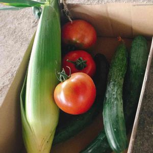 我家の畑の収穫物 今日の午前中、母親が穫って来たのをパチリ📲 わたくしの担当は耕耘機で耕したり肥料を運んだり 食べる事が主です😅