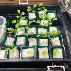 小松菜を植えてから約1ヶ月が経ちました。金魚水槽の上部分に設置した100均仕様の栽培ケース。 ヒョロっとしてますが、それなりに成長してます。