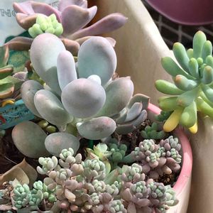 最近の雨でぷくぷくになってる😊 寄せ植えなんだけど、この部分が優しい色合いでかわいいの(*´꒳`*)