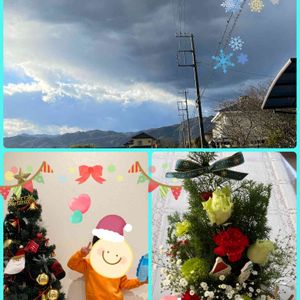 土曜はお空の発表会に参加しまーす♬ 先日歩いていたら急に頭上に黒い雲💦サーッと私だけ初雪を浴びました❄️あっという間に消えました😅 左下〜昨日はお誕生日会だったらしくご機嫌な孫😆✌️ 右下〜今週の校長室のアレンジメント🎄🎅