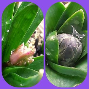 ベランダのヒヤシンス。 やっと蕾発見!(´・∀・)σ でも比べると ピンクのほうが。。。o(゚^ ゚)ウーン 今年は寒さが厳しいせいか、今だにムスカリもヒメリュウキンカの蕾も顔を出しません|!l(˶߹꒳߹)l!|