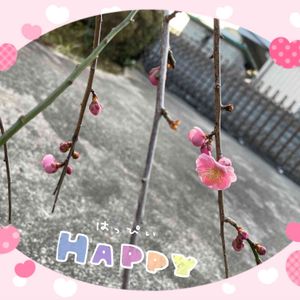 おはようございます😃 今日も皆さまにhappy〜💕 鉢植えの枝垂れ梅が咲き始めました〜♬🌸 うれち〜😆👌