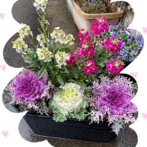 我が家の葉牡丹とストックの寄せ植えです♬いい感じに大きくなって〜これまたうれち〜わわ😆👌