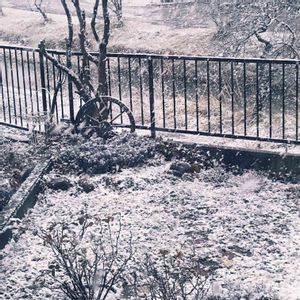 ペコさんからお迎えした 春うらら×ジョゼリンのバラ エッジがピンクでキュートです💓💓 今日も吹雪〜 もうやめて😅