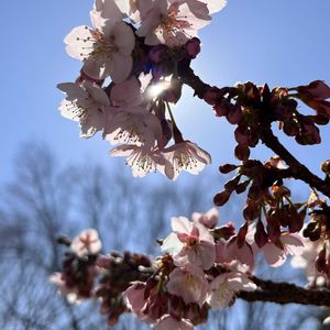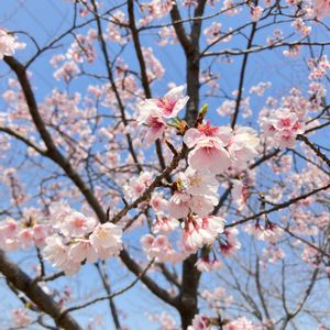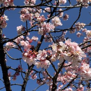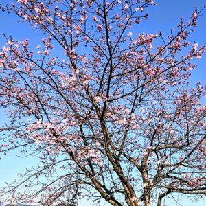 こちらも河津桜のキレイな公園の 寒桜です。 「わあ~カワイイ😍」と思わず声が出るピンク色😍 寒緋桜と山桜の自然交配種だそうです。 寒緋桜を片親に持つとピンク色が濃い種が出来るようですね。 メンデルの法則ですかね🤔