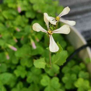 いつの間にか伸びていた茎に今朝花が咲いていた😃 なんだろう?カタバミとミントだけの鉢に。 分かりました☀️ことりのの落とし物からかなぁ❓