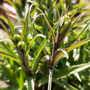 シンピジュウムの蕾 気の早い子 膨らみかけです。 見えませんが、 奥にも二本出てます。😊