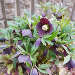クリスマスローズ、プチドール黒紫です。 株が復活しました❣️ 500円玉サイズの花がたっぷり咲いています❤️