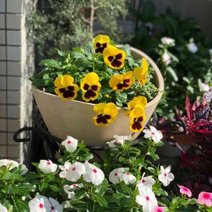 ビオラは可愛い😍 NHK趣味の園芸で、寄せ植えは2色まで、と教わりました。たくさんの色があると目移りしてどれを見て良いか分からなくなるのかな? でも、2色にして大正解。スッキリして清々しい美しさです😊